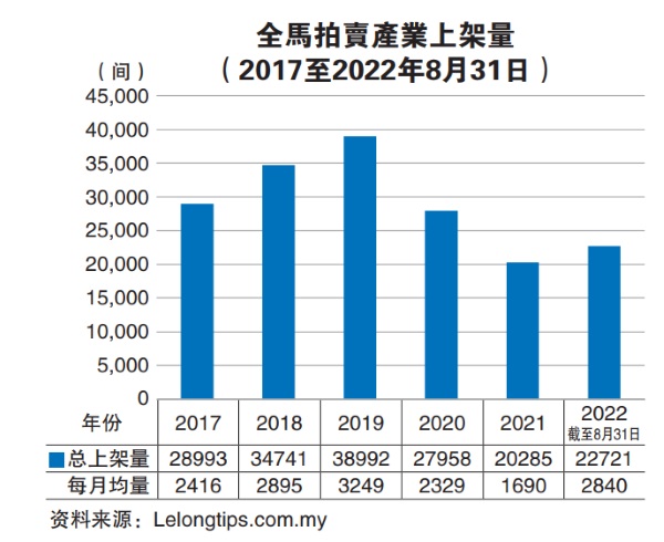 从LelongTips.com.my提供的数据看来,2022年首8个月的拍卖量,已经比去年全年的2万零285间多出12%,但仍还未回疫情前状态。