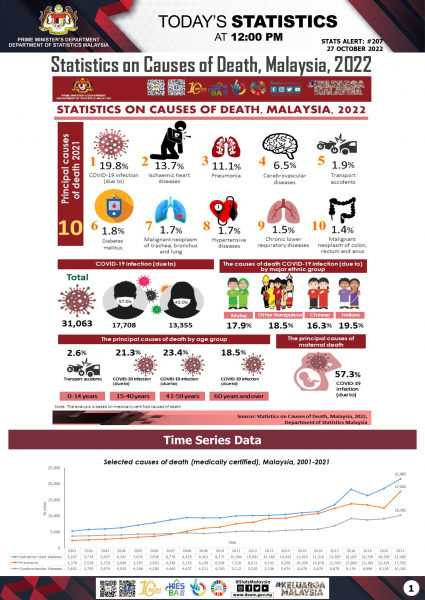 统计局:去年大马人主要死因 冠病最夺命 3万人死