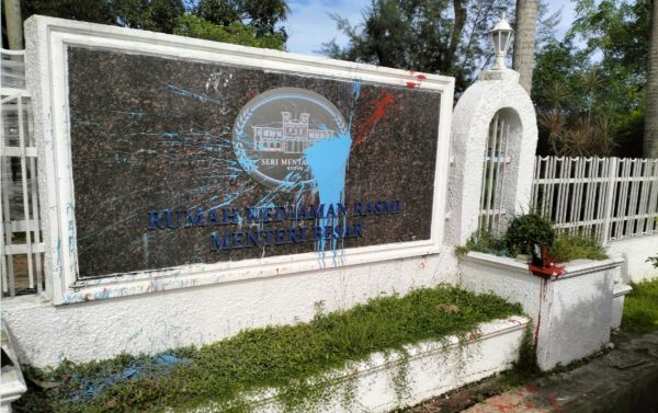 根据早前报道,吉州大臣官邸于10月17日遭到不明人士泼漆,当时官邸的围墙牌字被红蓝油漆击中。