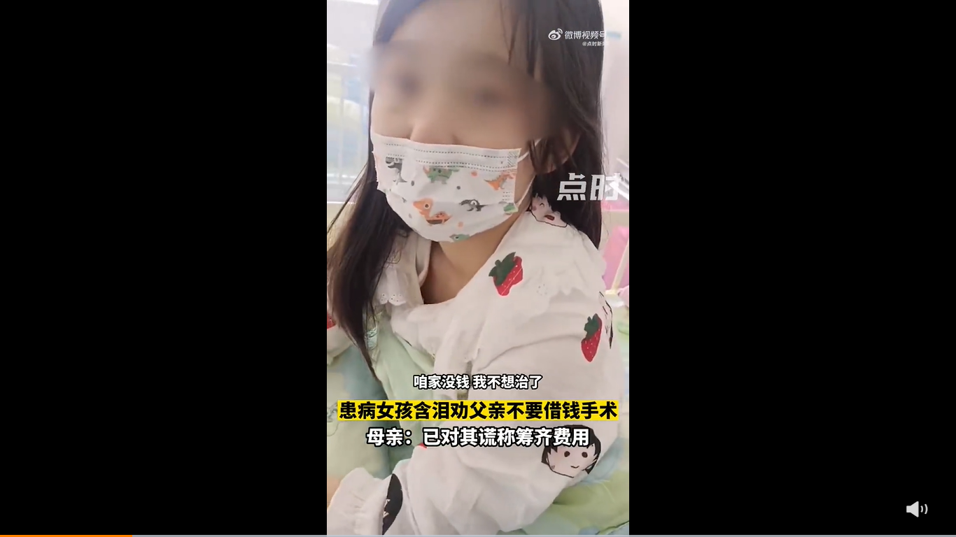 中国郑州一名重病女孩,含泪劝父亲不要借钱给她动手术,让父母双双落泪哭喊不舍得!