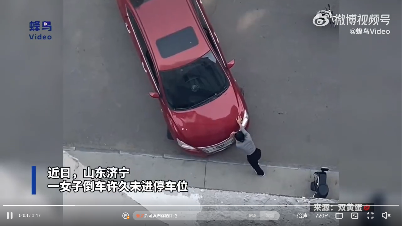 中国山东济宁一名女子近日被发现开车到停车场,倒车好几次都泊不进车格,竟走下车用蛮力将车子推进去,引发讨论!
