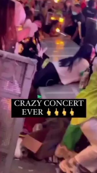 没想到,除了炸弹威胁信外,演唱会进行到一半时,疑似因为场地过小,前排摇滚区的观众不断往前挤才造成推挤事故。据悉,成员们演唱《Paradise》时,安排了将签名球送给粉丝们的桥段,但因粉丝不断向前推挤造成摇滚站区前的围栏被推倒,队长泰容突然说:“等一下,等一下,前面的人请稍微往后退”中断了歌曲表演。