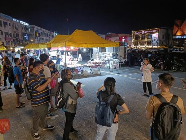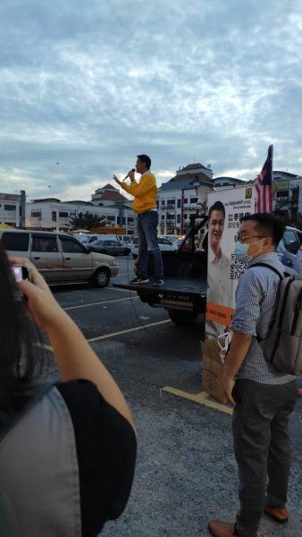 较早时,士布爹国席另一名独立候选人李伟康也在夜市的另一端举办讲座。