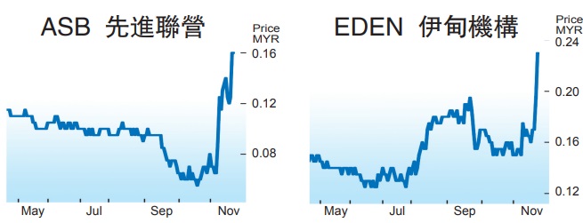 慕尤丁概念股伊甸机构(EDEN,7471,主板公用事业组)和THRIVEN环球(THRIVEN,7889,主板产业组)表现相反,先起后跌。早盘时THRIVEN环球被看好,大涨3.5仙,报19仙;伊甸机构也起3.5仙,报23仙。同样,到接近下午4时,确认没人获得简单多数票任相后,伊甸机构股价顿时悬崖式下挫38%或11仙,报12仙,最后以17.5挂收,全天下跌2仙或10.26%。THRIVEN环球遭遇相同,午后大跌近30%,最后以14.5挂收,全天挫1仙或6.45%。