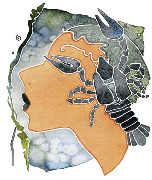 醒来的时候,我的八只脚紧缩在侧动弹不得,全身被细绳一遍遍地捆绑起来。钳子在被强行扒开时弄伤,外壳有了细细的裂缝,强而有力的钳两相对称抵在头上,腹部抵着破烂报纸,玻璃桌面透出一股酷似海洋的凉意,真叫人鼻酸。数小时前,我还在海浪的拍打中嚼食海藻,身体随水流轻轻晃动,如今只能透过一片硬邦邦的玻璃想念海浪。