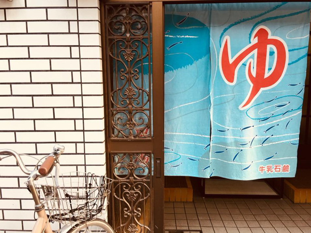 我默默跟在其他日本人后方学习澡堂流程,掀开门帘,用硬币换置物柜钥匙,往钥匙号码的方向走,脱下衣物放入置物柜。接着便是系统性的作业,在凳子上洗脸、修胡子、洗头、洗身、洗脚、泡澡、抹干身体、吹头发。