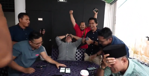 在得知公正党主席拿督斯里安华受委为首相后,公青团团长阿当阿里以及数位相信是公正党党员和安华的助理大声欢呼,抱成一团,有者甚至是喜极而泣,感动得落泪,过去的坚持付出都有了回报。