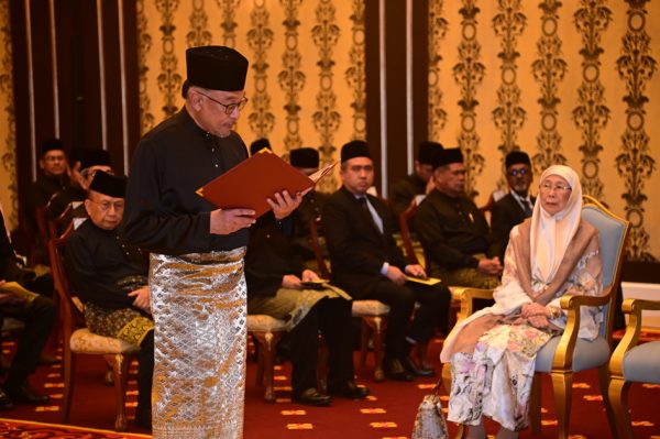 安华于今午5时在希盟各成员党领袖与家人的陪同下,在国家元首苏丹阿都拉陛下面前宣誓就任。