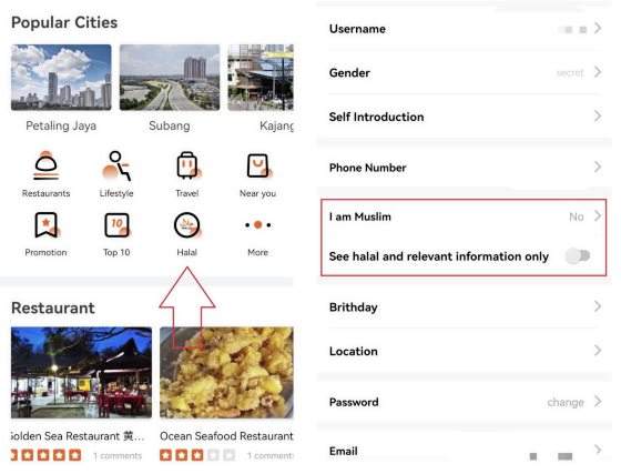 对大马消费者来说,语言不成问题,主要是解决不同族群的饮食需求。倘若是穆斯林消费者,可以在应用首页直接点击“Halal”,MyComments就会显示所有清真认证的餐厅和服务。另一个方式是到个人档案的设定,选择“我是穆斯林”,再点选“只是展示清真和相关的资料”即可。MyComments之后只会显示获得清真认证的商家服务。