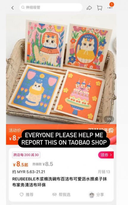 她心疼又无奈地说道:“中国那边的版权跟我们马来西亚这里的版权是不一样的,我那时候就很无奈,上网看(中国网上购物与社交平台)小红书,看该怎么办,就看到中国国内的插画家或设计师也有申请版权,但他们的作品还是一样会被盗。”