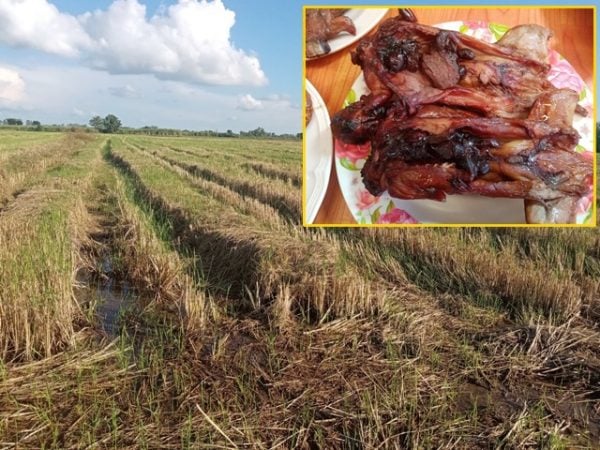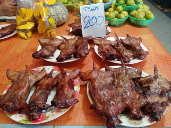 (曼谷1日讯)进入初冬季节,在农民收割完稻谷之后,位于甘烹碧府潘加代县市政市场的摊位上,经常会有很多的田鼠在出售。每年的这个季节,人们都会前来购买其用于烹饪当季菜品。烤熟后出售的田鼠有中型的和大型的,除去内臟之后烤至金黄,香气传遍市场,儘管价格比猪肉贵2倍,依然难挡食客购买的热情。