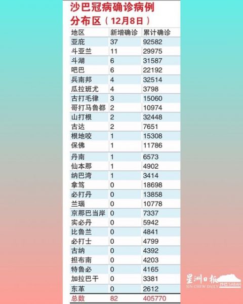 (亚庇8日讯)确诊数字起伏不定,沙巴冠病单日新增病例昨日回升过百宗,今日又落回双位数,新增82宗。