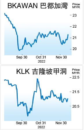 (吉隆坡12日讯)巴都加湾(BKAWAN,1899,主板种植组)和吉隆坡甲洞(KLK,2445,主板种植组)上周宣布派发特别股息后,股价周一应声上涨。