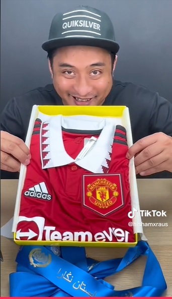 这名男子希山昨日在Tiktok上传了他的开箱视频,并感谢元首后爱民如子,真的送了他一件从伦敦带回来的曼联球衣。
