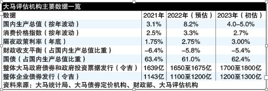 谈及国家财政方面,他认为,原产品价格日渐走缓,连带也缓和相关补贴支出,或有望将财政赤字维持在占国内生产总值(GDP)的5.4%,不过胥视最终的补贴合理化计划,包括主要的补贴商品汽油及电费;2022年财赤料达5.8%。
