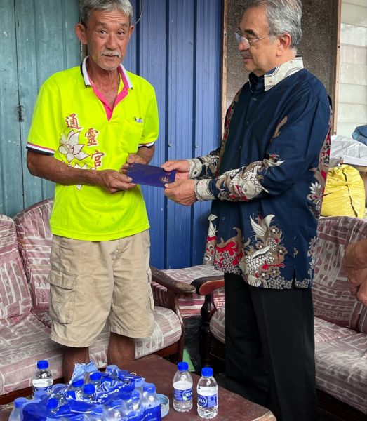 莫哈末阿里今日慰问死者家属后,分别移交抚恤金予赖家及戴家。