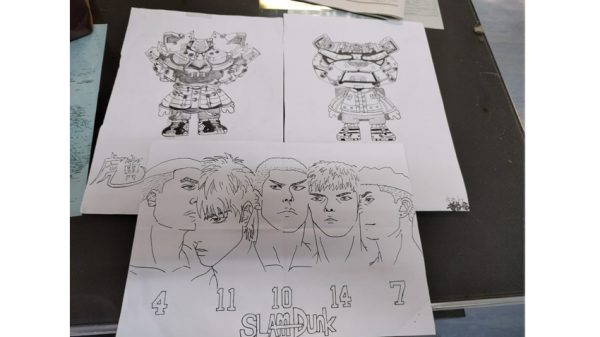 一张白纸可以有很多用途,但被用过的白纸也可以有用途的。一张白纸有双面,即便只有一面空白,我也会将它充当画纸,把我喜欢的人物“刻”在空白的那一面。其中一张就是《灌篮高手》中湘北首发五虎的肖像,虽然画得不如原图,但那是因为我长时间没有动笔导致的。(我在为自己找借口吗?也许?)毕竟这部动漫是我的童年回忆,我之后会再画出与原图接近的仿画的!