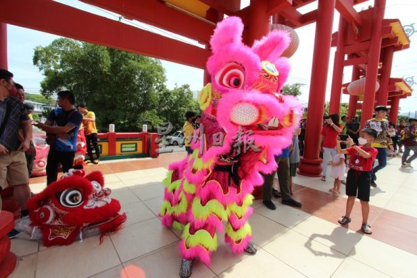 今天在亚庇碧南堂举行的新狮点睛仪式上,一头粉红“兔狮”出现在现场,即刻成为众人瞩目焦点。