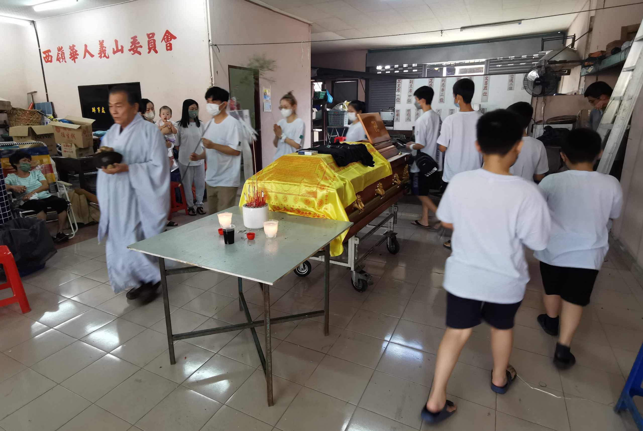 死者母亲今日出席殡礼时,悲伤痛哭,亲友们纷纷上前安慰。
