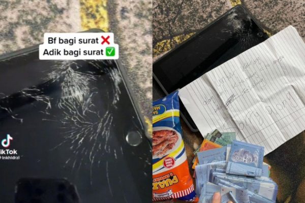 “母亲只是说iPad有小裂痕,而正在值班的我也没有太详细追问下去,但当我回家后,就看到我那屏幕破裂的iPad,同时放着一封信、500令吉的现金以及面包,原来是弟弟向我赔礼道歉。”