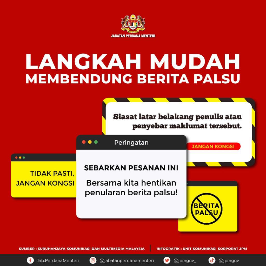 此外,首相署还指出,民众若发现任何的假消息,也可通过网站(https://aduan.skmm.gov.my/)向通讯及多媒体委员会进行投报。