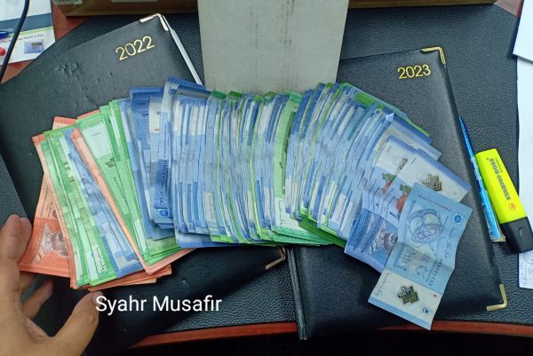 脸书账号@Syahr Musafir的网友日前分享说,自己都很懒惰到银行换新的纸币作为开斋节压岁钱,因此这几年来开始收集比较新和完好的1令吉,以便在开斋节时包青包。