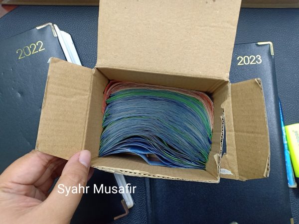 “在2022年斋戒月后,我又开始存钱。直到1月1日,我从储蓄盒拿出钱来算,我成功存到了1234令吉。感谢上苍。当中有684张1令吉。算是完成我的‘开斋节压岁钱的库存’了。”