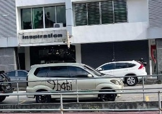 社媒专页“Penang kini”昨日上载的5张照片显示,多辆停放在新港肯德基商店一带的汽车,被喷上“babi”字眼。