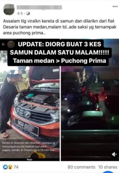 此外,据事主的妹妹法拉在脸书发文,指其哥哥当天多灾多难,在白天遇车祸被撞至胫骨骨折,但肇祸者却不认错,哥哥惟有自行开车到医院接受治疗,直到凌晨独自回家时却在组屋下遭人抢车。