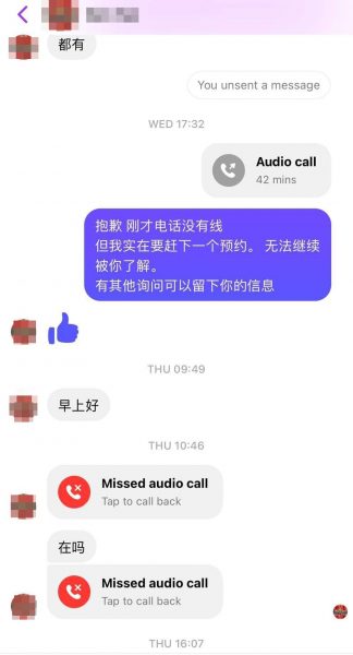 她指出,因对方是通过社交媒体拨电,她只能拉黑对方,而对方还不死心尝试再次骚扰她们;惟没有足够的证据,她们并未向警方投报。