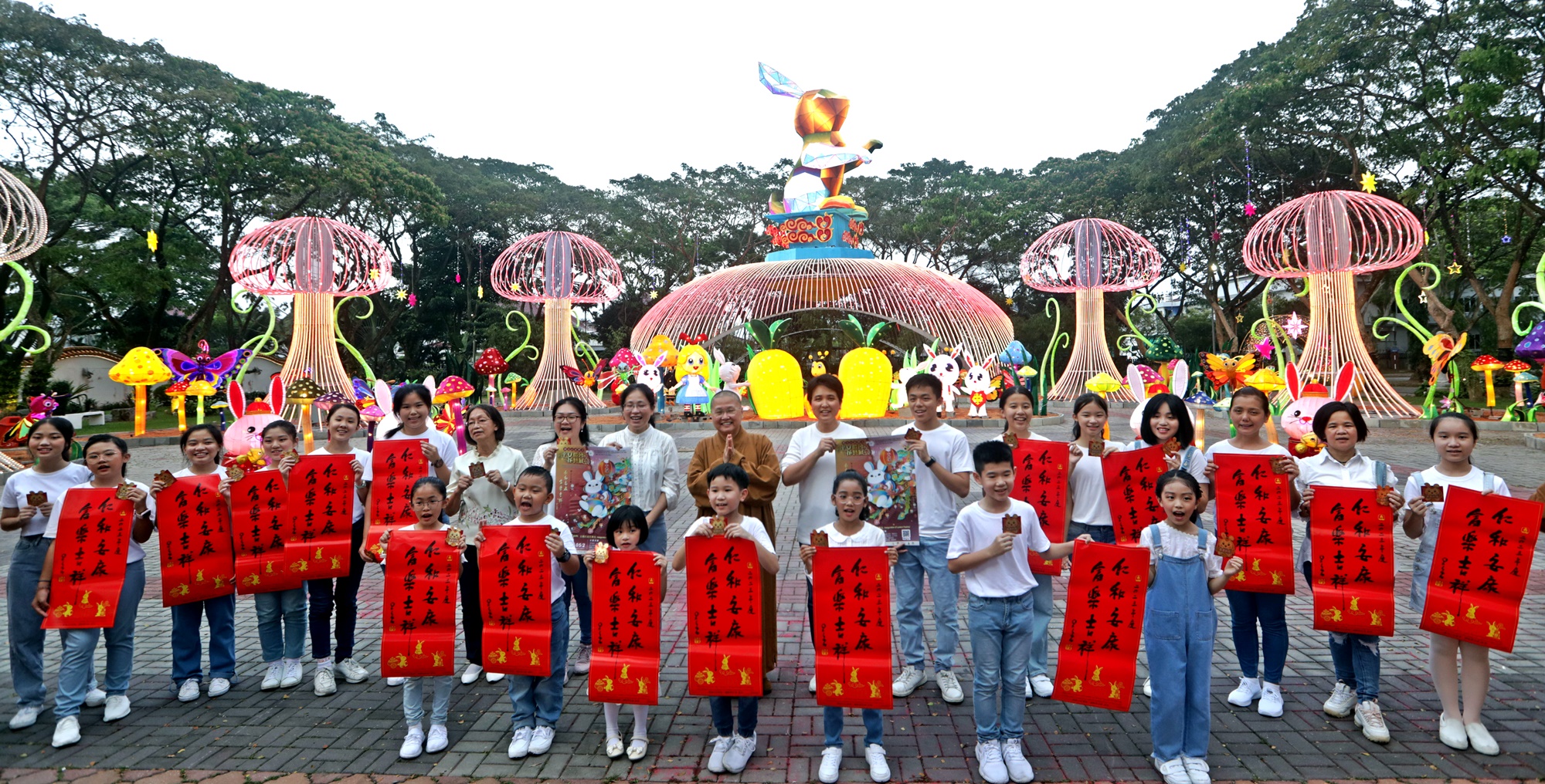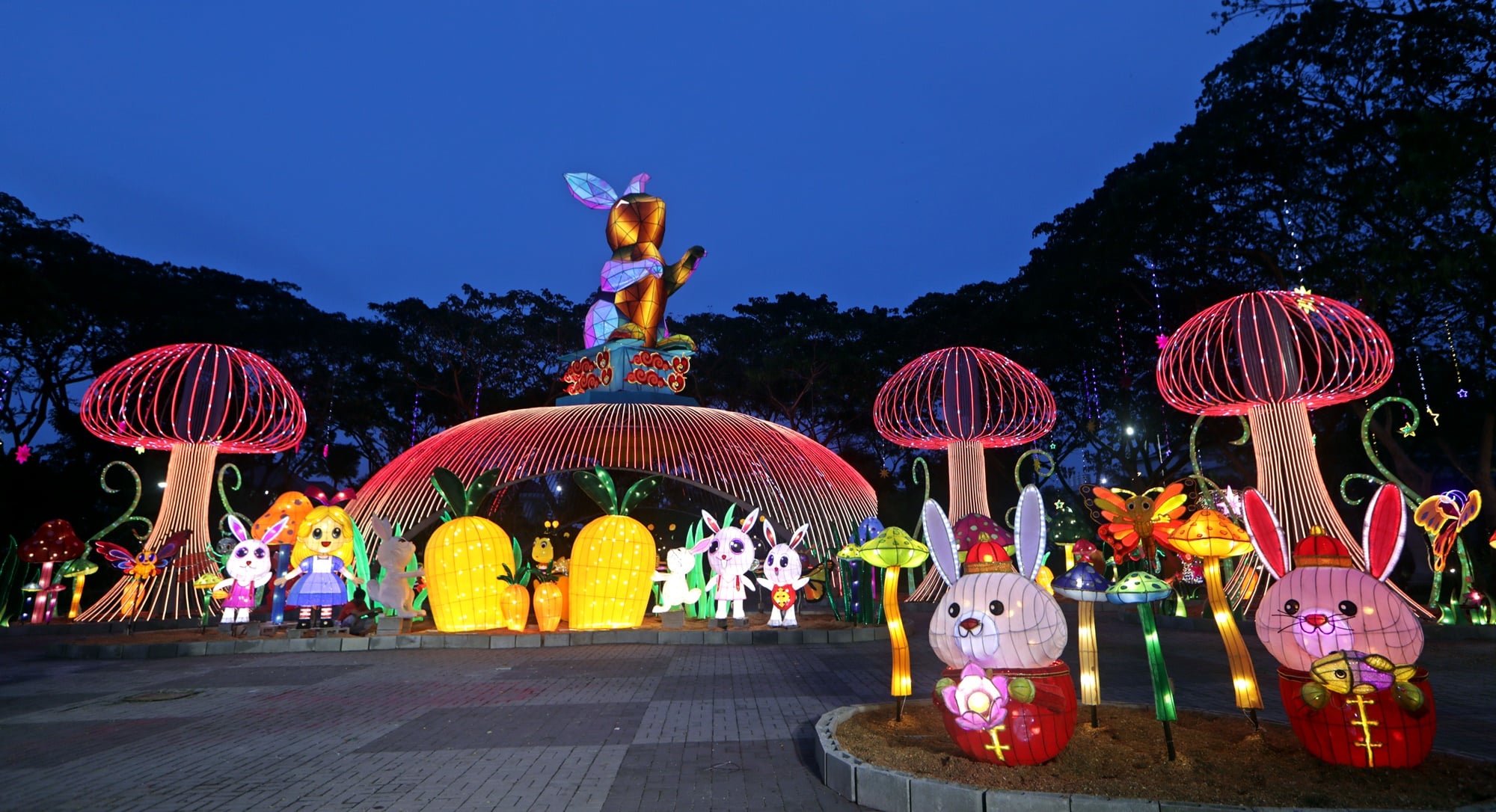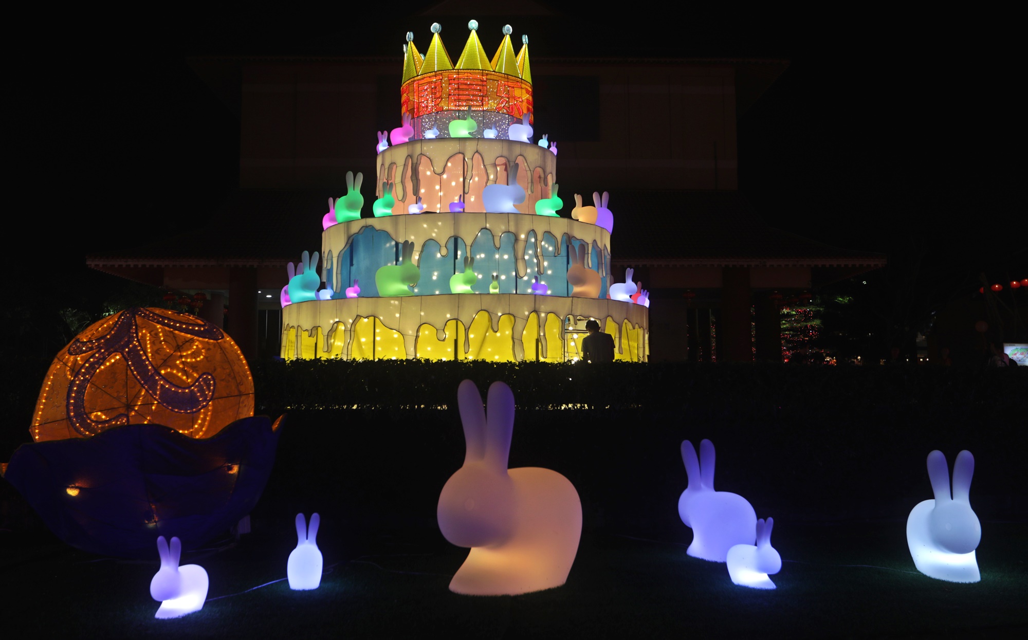 今年是癸卯兔年,星云大师给大家的新春祝福“仁和安康 富乐吉祥”,祈愿大家以慈心待人,一切好事皆圆满。祝福大家在新一年像兔子一样灵巧、机智,能够洞察一切。今年主题灯是一只非常闪烁亮丽的大兔子,高达30呎,必定是民众打卡热点。