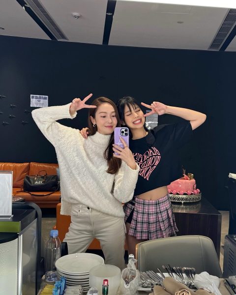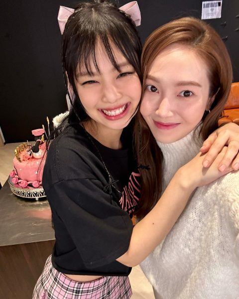 Jessica 15日晚间上传一段长25秒的视频,Jennie在台上solo唱跳,Jessica还在影片中亲昵地附上了“My Nini Baby”的文字。视频一公开让许多网民们都感到惊讶,原来两位相差近7岁的演艺圈前后辈竟是朋友!网民也Jessica竟也身在香港,并且低调藏身在演唱会的前排观众之中。而Jessica昨在Jennie生日这天PO出4张后台探班照,2人除了合照比YA,更亲昵地抱在一起,Jessica写下“Happy birthday sweetie”显见2人交情非常好。