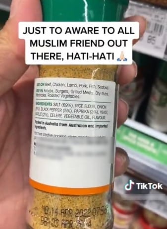 (八打灵再也18日讯)一名女子日前拍视频,言之凿凿指某品牌调味料含“猪”成分而引起不少穆斯林担忧与议论;谁不知,原来她看到“猪”字眼,便认定是指产品成分,错误理解“使用在”(use on)一字。