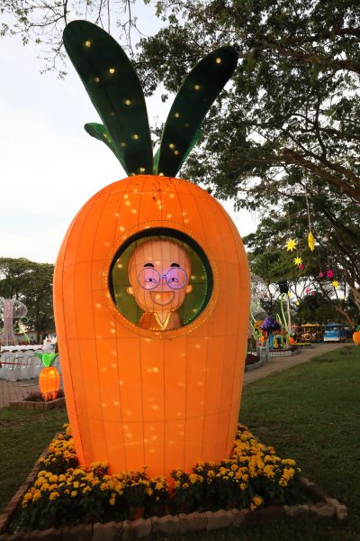 今年的主题灯是一只10公尺(30呎)高,金光闪闪的大兔子,整个主题灯区打造成爱丽丝梦游仙境场景般,如梦如幻,缤纷可爱。