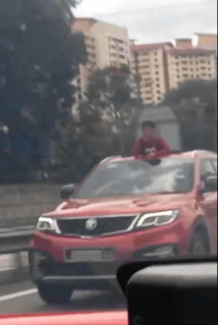 八打灵再也警区主任莫哈末法克鲁丁助理总监指出,警方于今日凌晨12时15分,在推特发现一名用户@nabilahroslan发布时长9秒的视频,显示一名孩童上半身从行驶中的红色宝腾X70休旅车的天窗冒出。