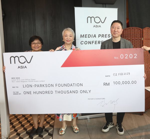此外,MOV ASIA也在仪式上宣布捐献10万令吉给金狮百盛基金会,由MOV公司主席金基卿移交支票给陈秋霞。
