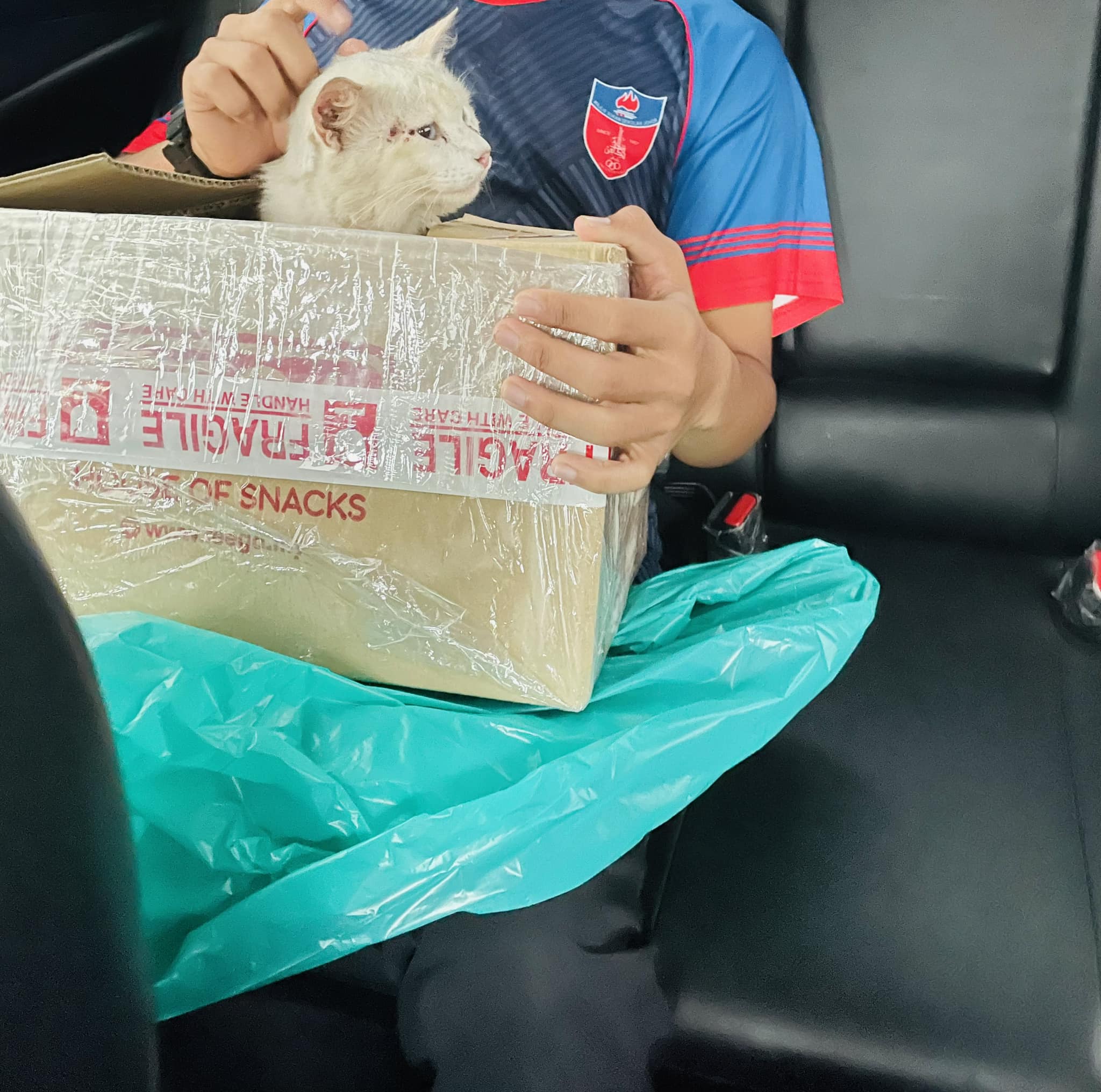 他说,他开门后,学生告诉他有一只猫受伤了,身体有伤痕且无法行走,希望他能帮忙救一救这只猫。