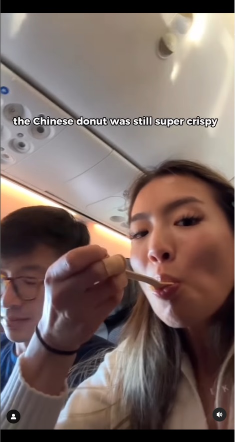 称配粥油条为中式甜甜圈 美网红赞“最好吃飞机餐”