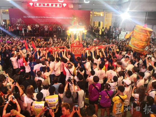 (新山11日讯)挥别疫情阴霾,2023癸卯年柔佛古庙众神夜游今晚隆重登场,柔佛苏丹依布拉欣陛下今年第四度受邀出席这项民俗嘉年华,现场人山人海,场面欢腾热闹。