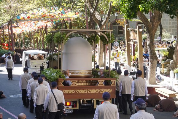在千华调的佛号声中,星云大师的涅槃塔于上午10时许开始移动,由众弟子护送涅槃塔巡山,之后发引台南白河大仙寺荼毘(火化),预计傍晚5时回到佛光山,永久安葬于万寿园。