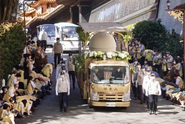 星云大师涅槃塔移动巡山 众弟子跪送最后一程