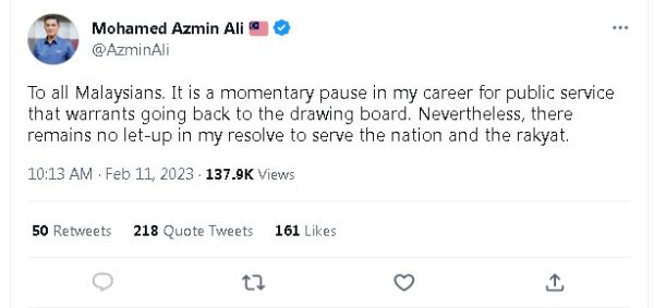 — Mohamed Azmin Ali 🇲🇾 (@AzminAli) February 11, 2023
