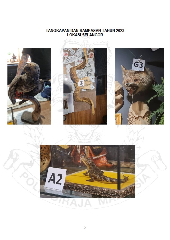 “此外,警方也在雪州地区逮捕1名本地男子及扣押69个野生动物标本,总值120万令吉。”