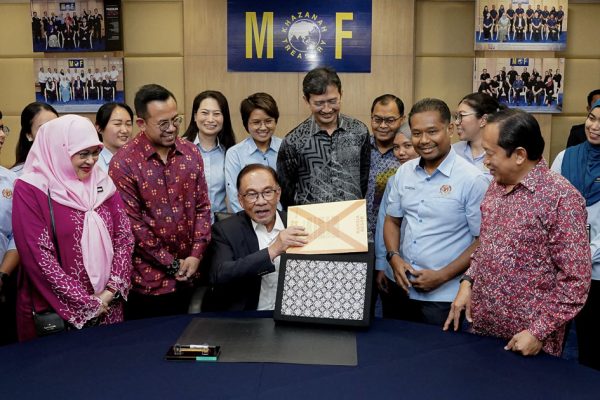 根据《马新社》报道,亦是财长的安华今日巡视财政部的财案准备工作,向媒体展示了上述砂拉越松革编织图案的黑色公事包。