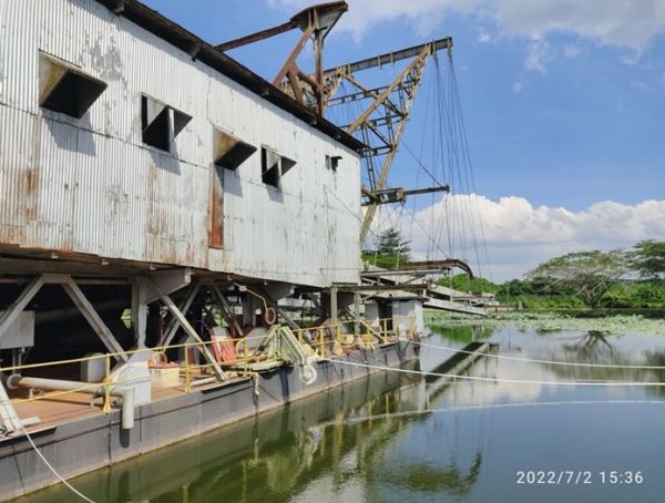 树胶和锡矿曾是昔日马来亚的经济命脉,既使它成为英殖民政府不舍得放手的下金蛋的母鸡,同时也形塑近代马来亚多元民族的社会面貌和自然风土地貌。胶林、矿山曾是马来半岛最具特色的景观。70年代初期我曾经到过开采锡米的“金山沟”,看过水笔冲刷矿坑泥壁,看过 “洗琉琅”。知道铁船开采是更先进的生产方式,却从未有机会“上船”见识。上山以后,对铁船想像又再加深,因为不少抗英初期从霹雳上队的老同志,不止一次讲述他们在铁船劳作的日子。那艘静静停泊在大脑一隅的铁船,经丽丽一提,霎时轰隆作响起来。