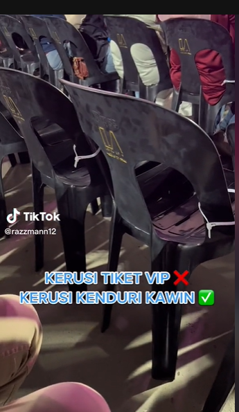 有歌迷在抖音上传了一段视频,显示他们坐在靠近舞台的VIP座上,但VIP座只是普通的塑料椅子,而且椅子之间还有塑料扣扣紧。