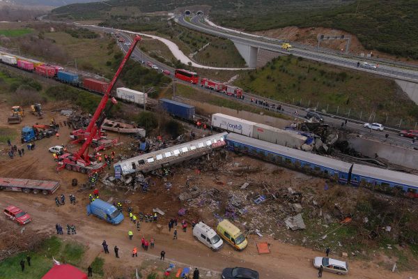 搜救团队天亮后仍在检查焖烧中的变型车箱,一旁的起重机将火车碎片缓缓吊起。直到事发数小时后,搜寻死伤乘客的工作还在进行中。国营希腊广播电视公司的画面中可以看到,陆续有覆盖白布的罹难者遗体被抬上救护车。