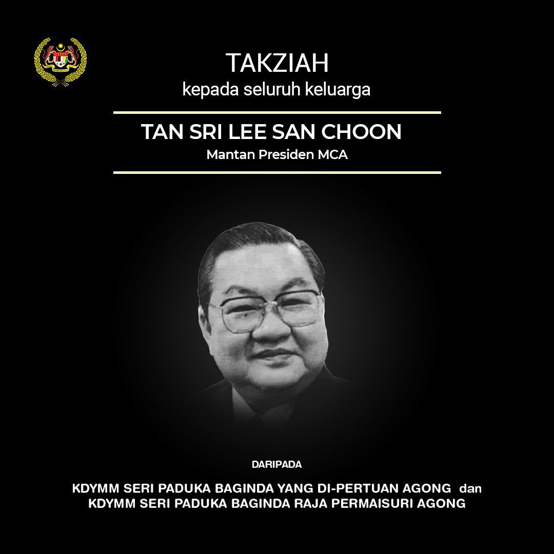 (八打灵再也4日讯)国家元首苏丹阿都拉和元首后东姑阿兹莎阿米娜,对马华前总会长丹斯里李三春的逝世致以哀悼,及向其家属致以深切的慰问。