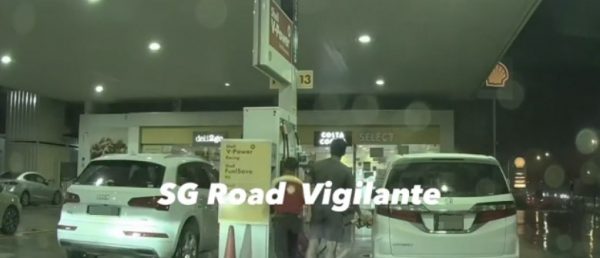 根据SG Road Vigilante在Youtube上传的视频,一名年轻的华裔男子正在为新加坡注册的本田(Honda)白色休旅车添油。