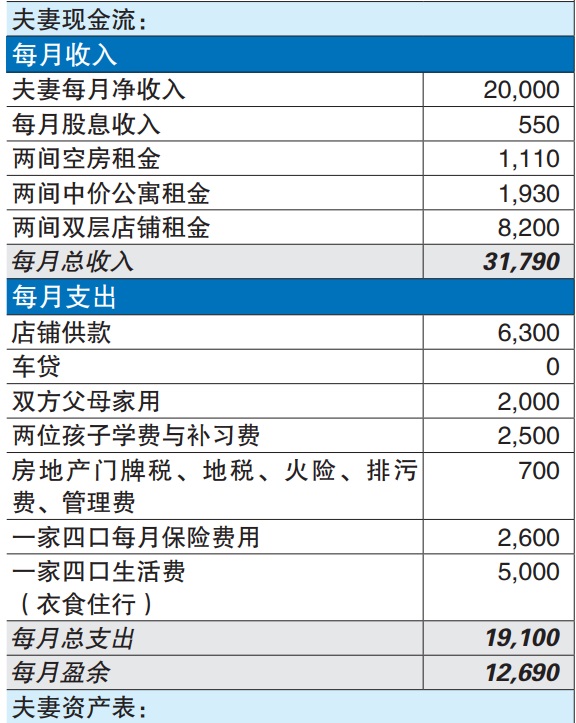 答:黄先生,你用共同夫妻收入,所以,我就计算你们同时在8年后一起退休,也就是你的太太延长至56岁退休。你们退休时,尚需要供店铺多10年,第一位孩子基本上已经进入大学,而第二位,在中学,你们可能还需要支援他们一些开销。